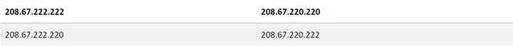 OpenDNS 有四个 DNS 服务器地址:(粗体为主要地址)